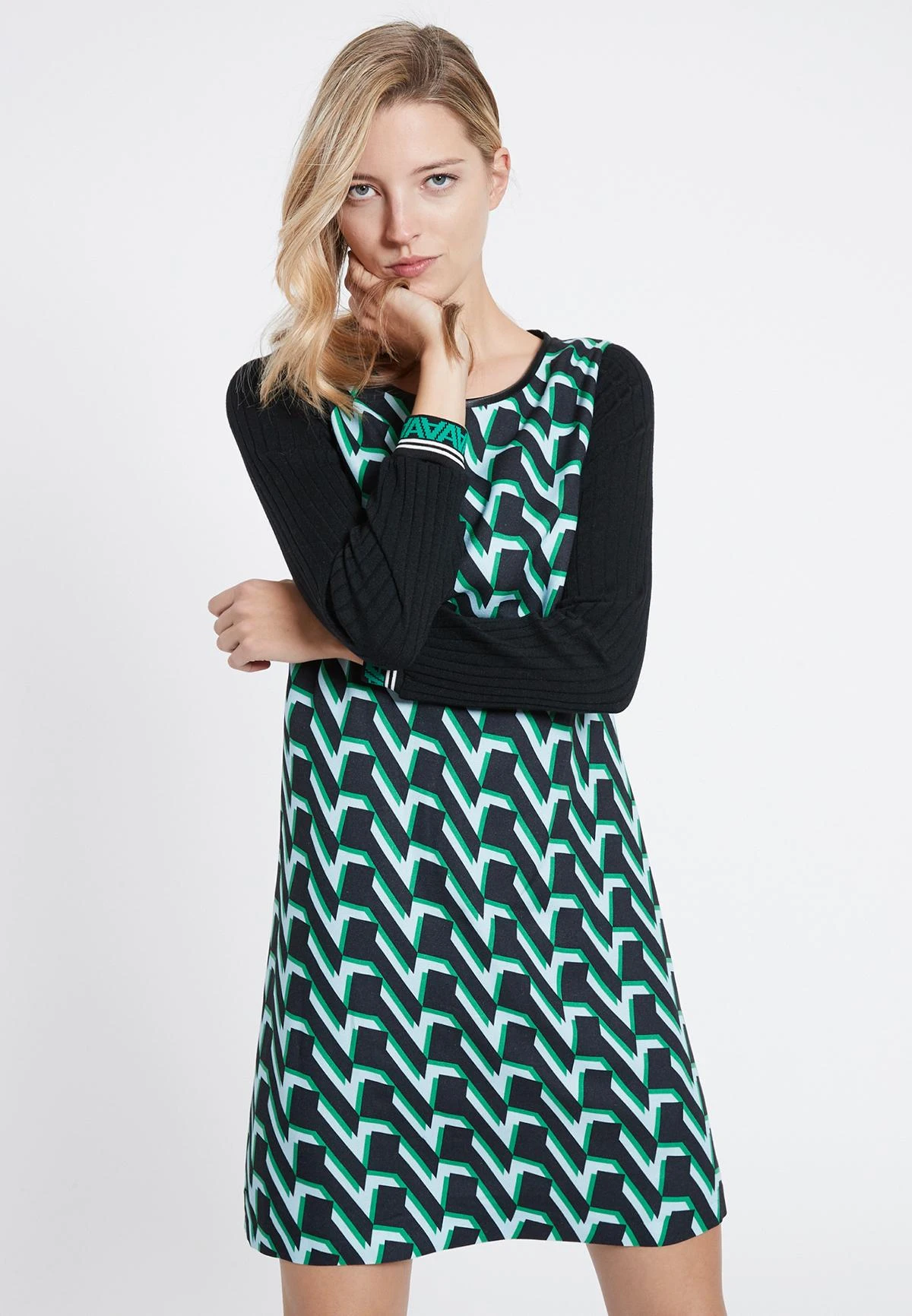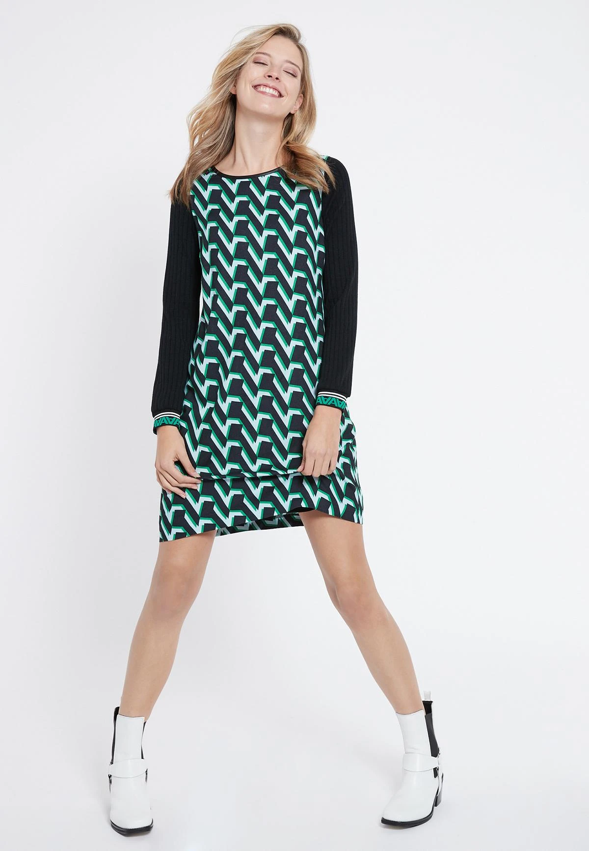 Casual Trui Jurk met Gebreide Mouwen