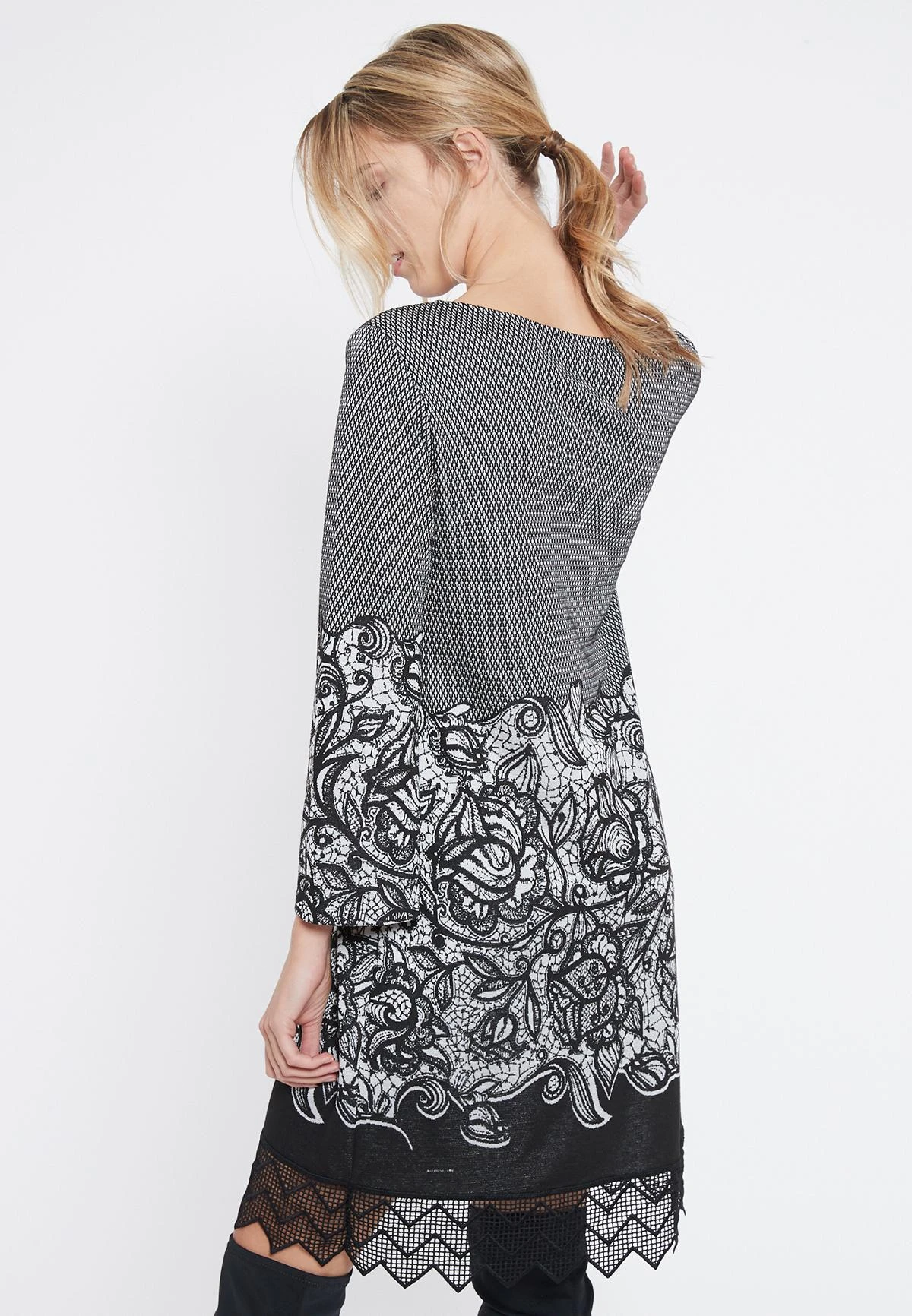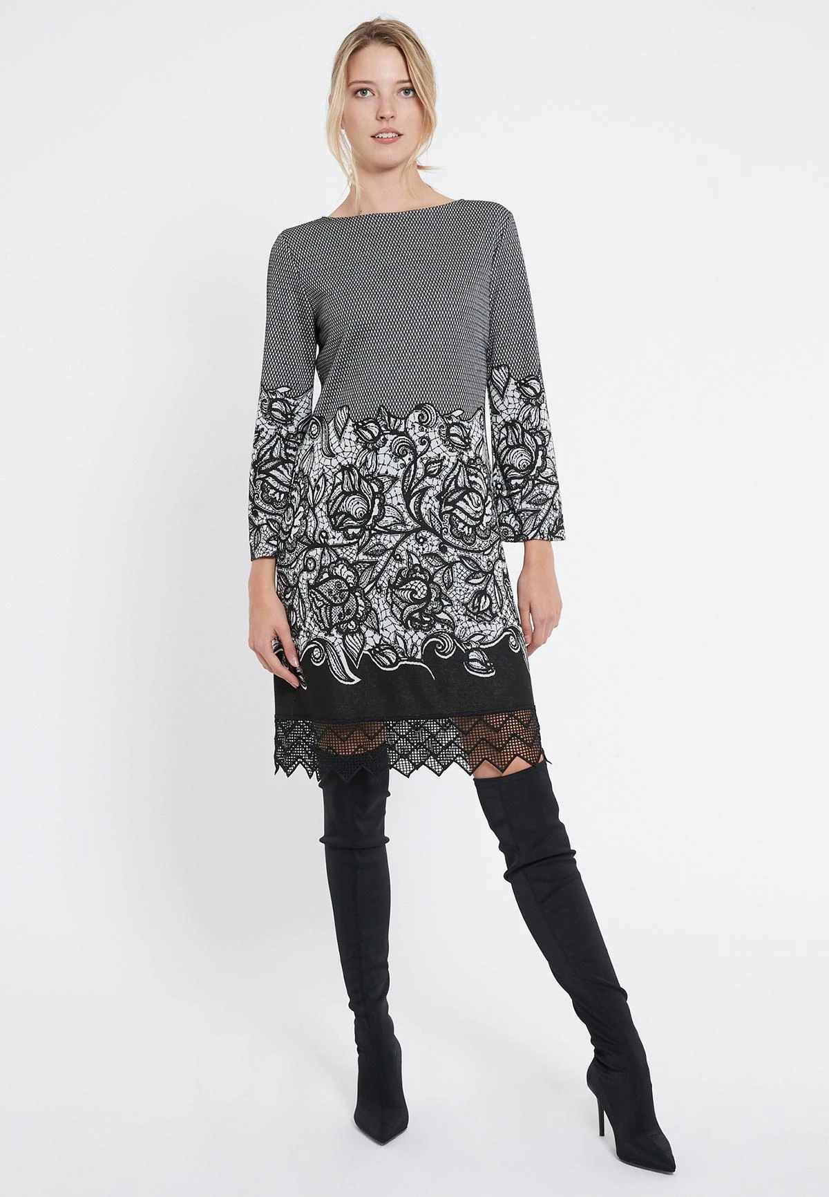 Elegante jurk met 3/4 mouwen en u-halslijn