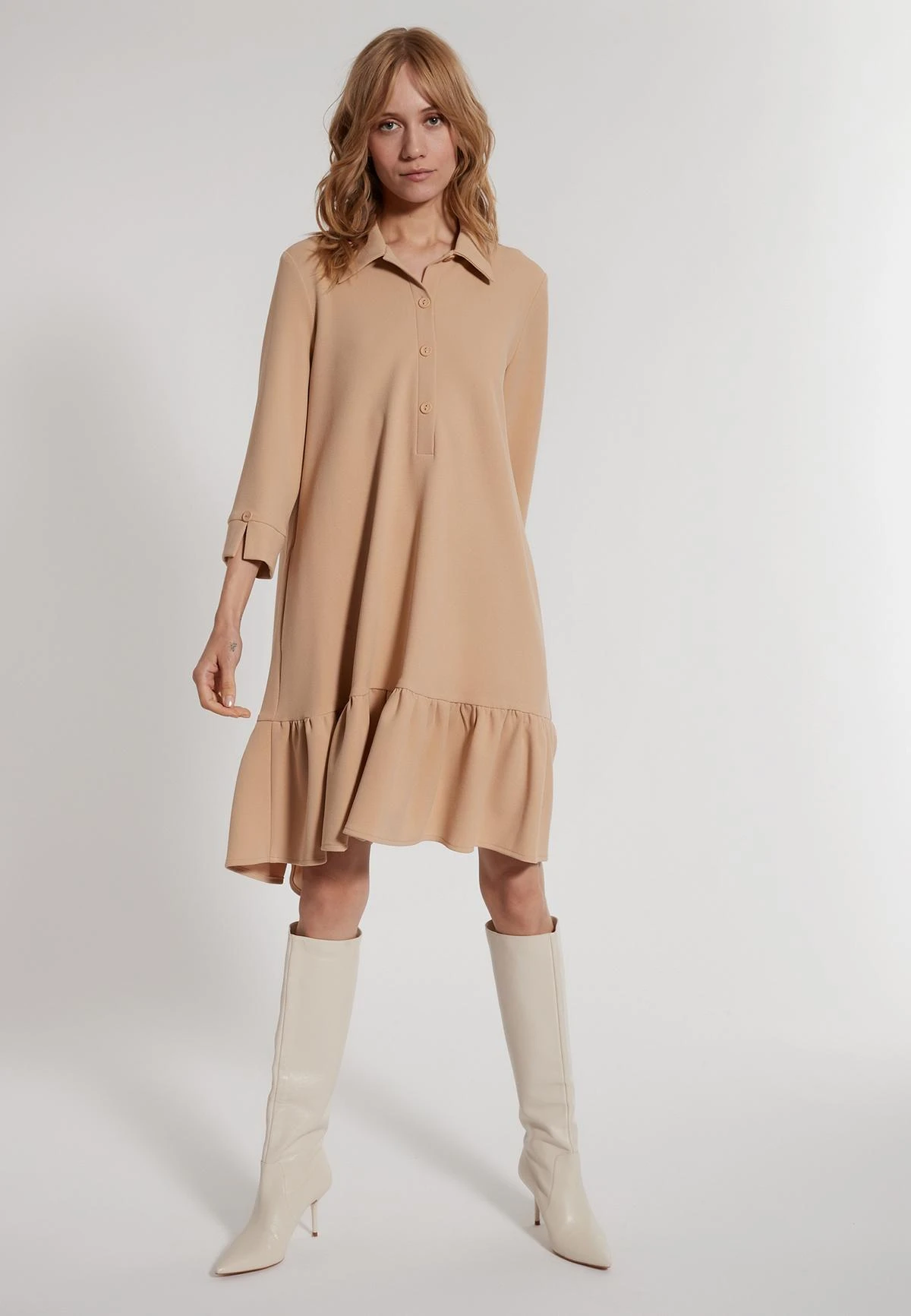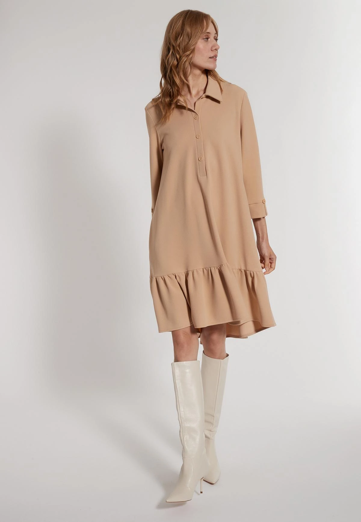 Flared Shirt Jurk met Volant en Kraag