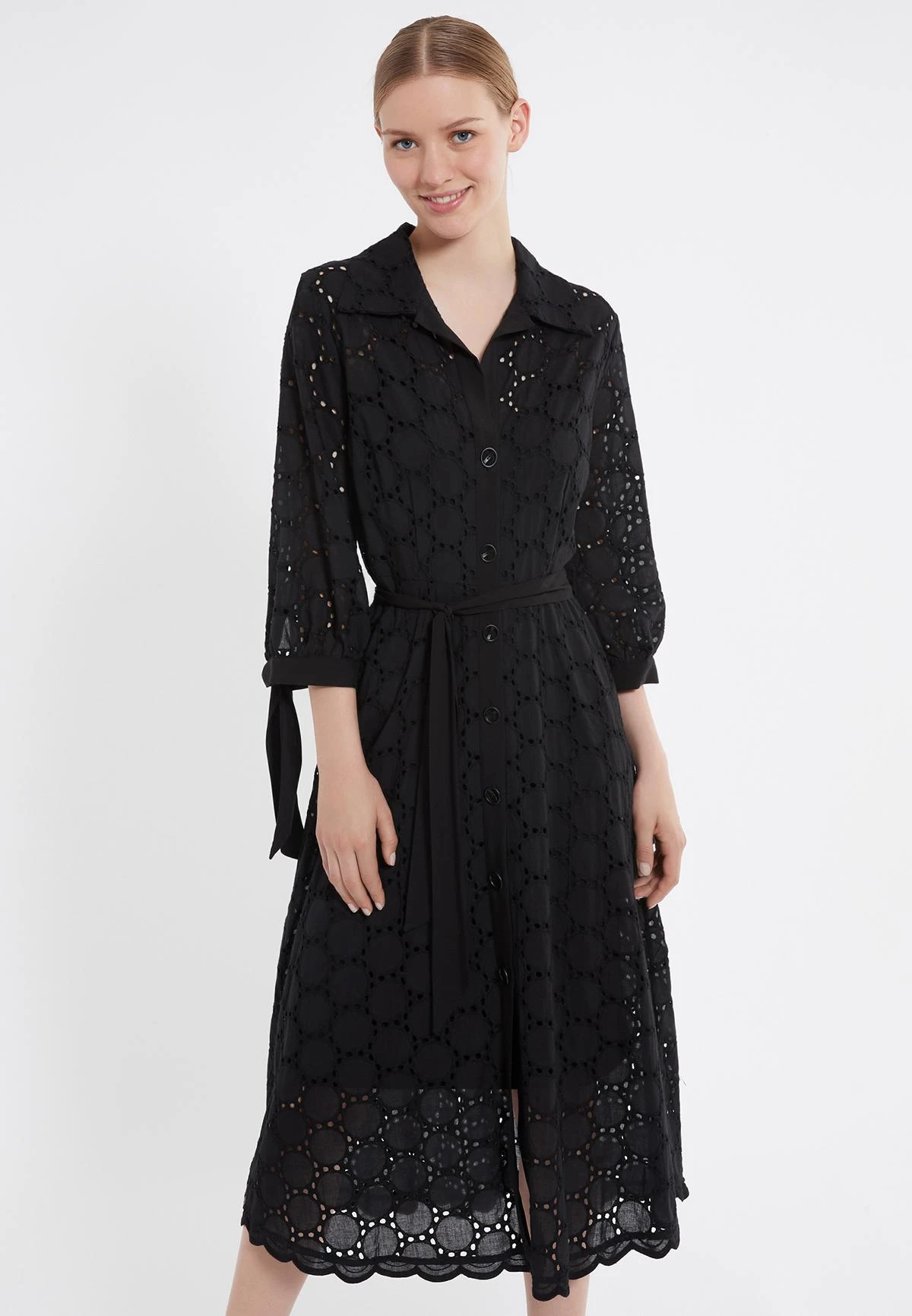 Blouse Jurk in Midi Lengte en 3/4 Mouw