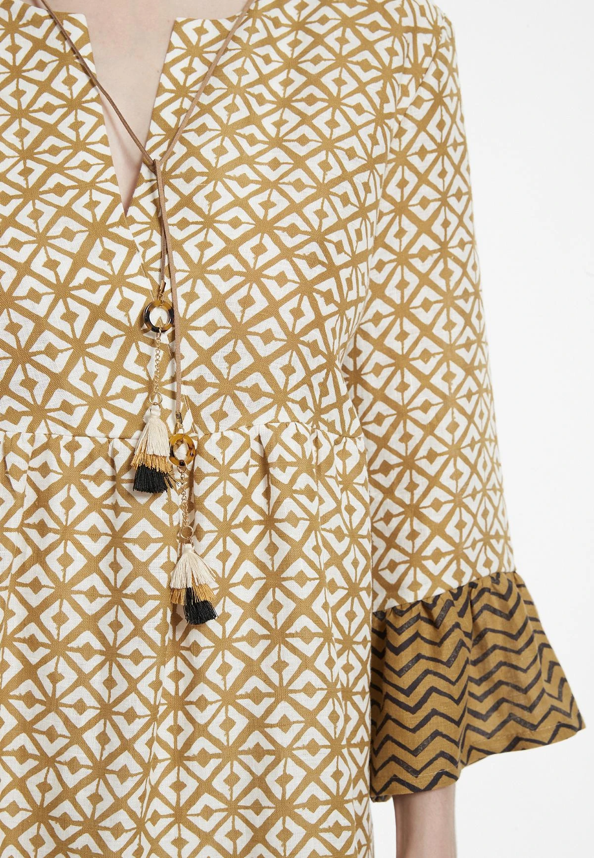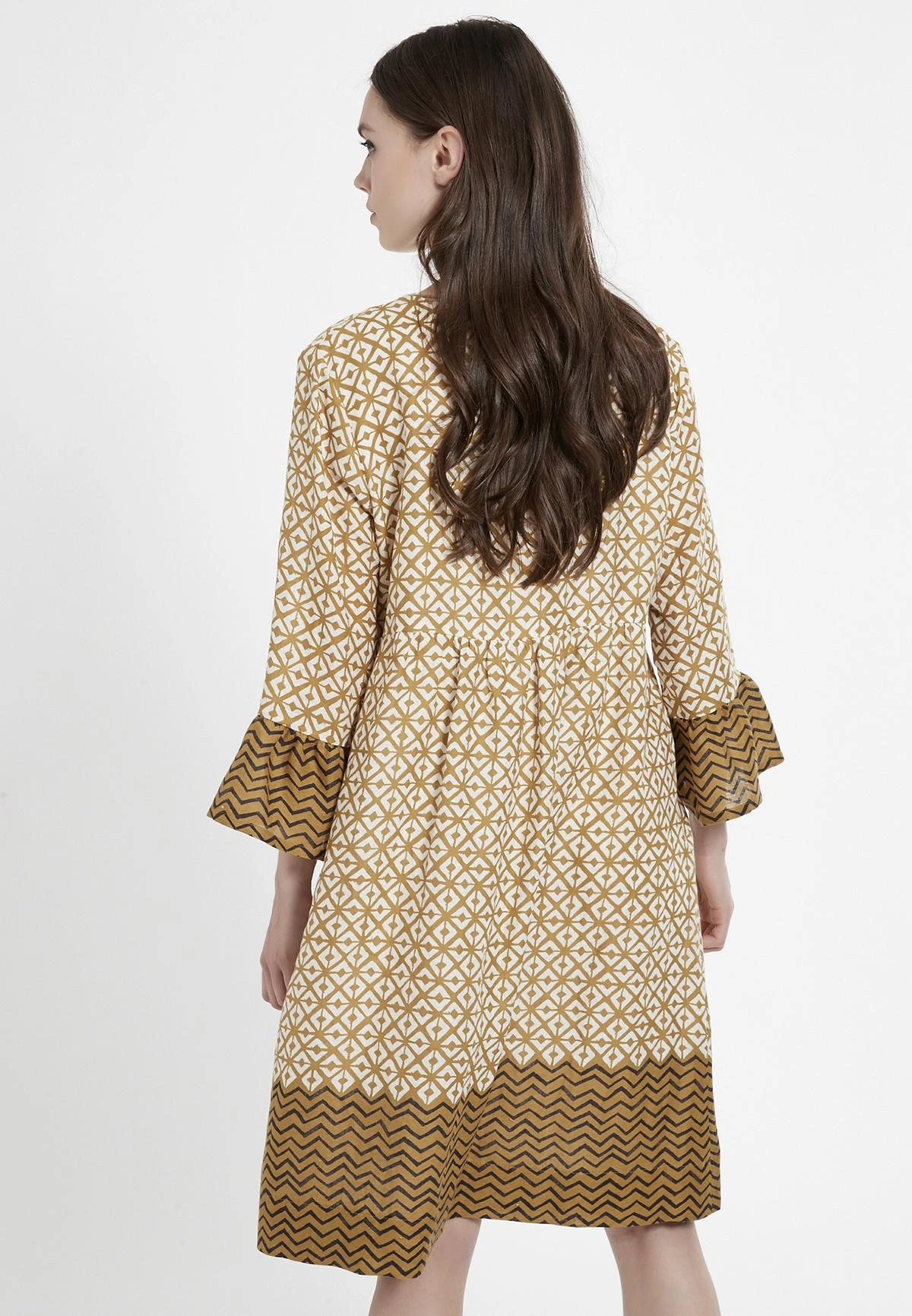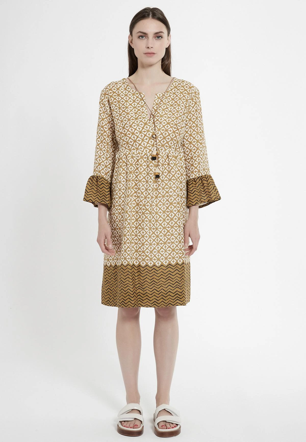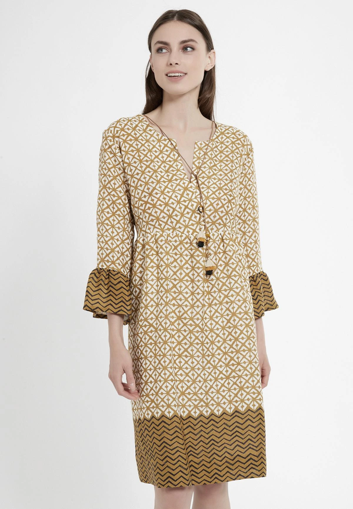 Jurk met V-Hals en Volant Mouw