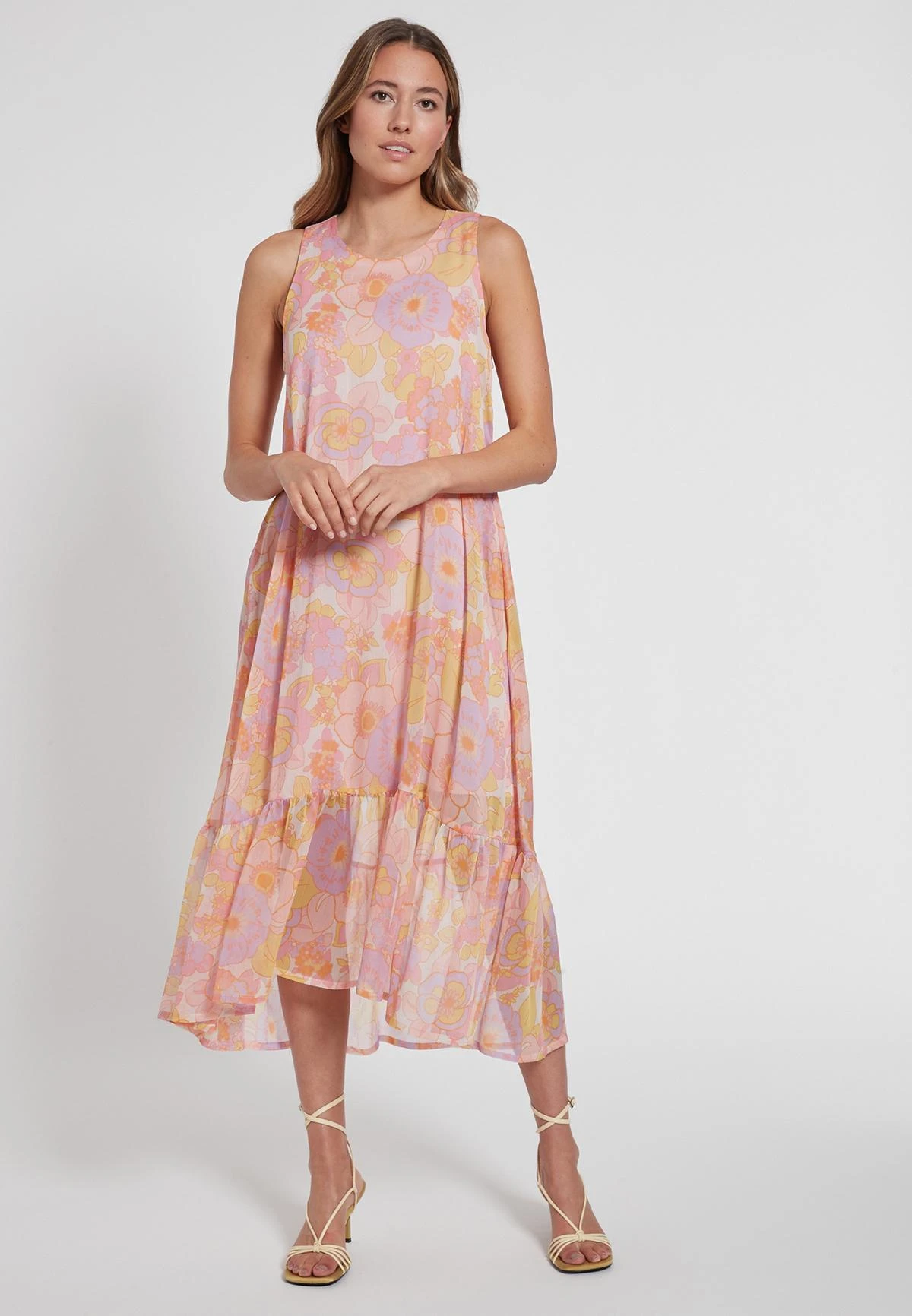 Wijde Mouwloos Volant Jurk