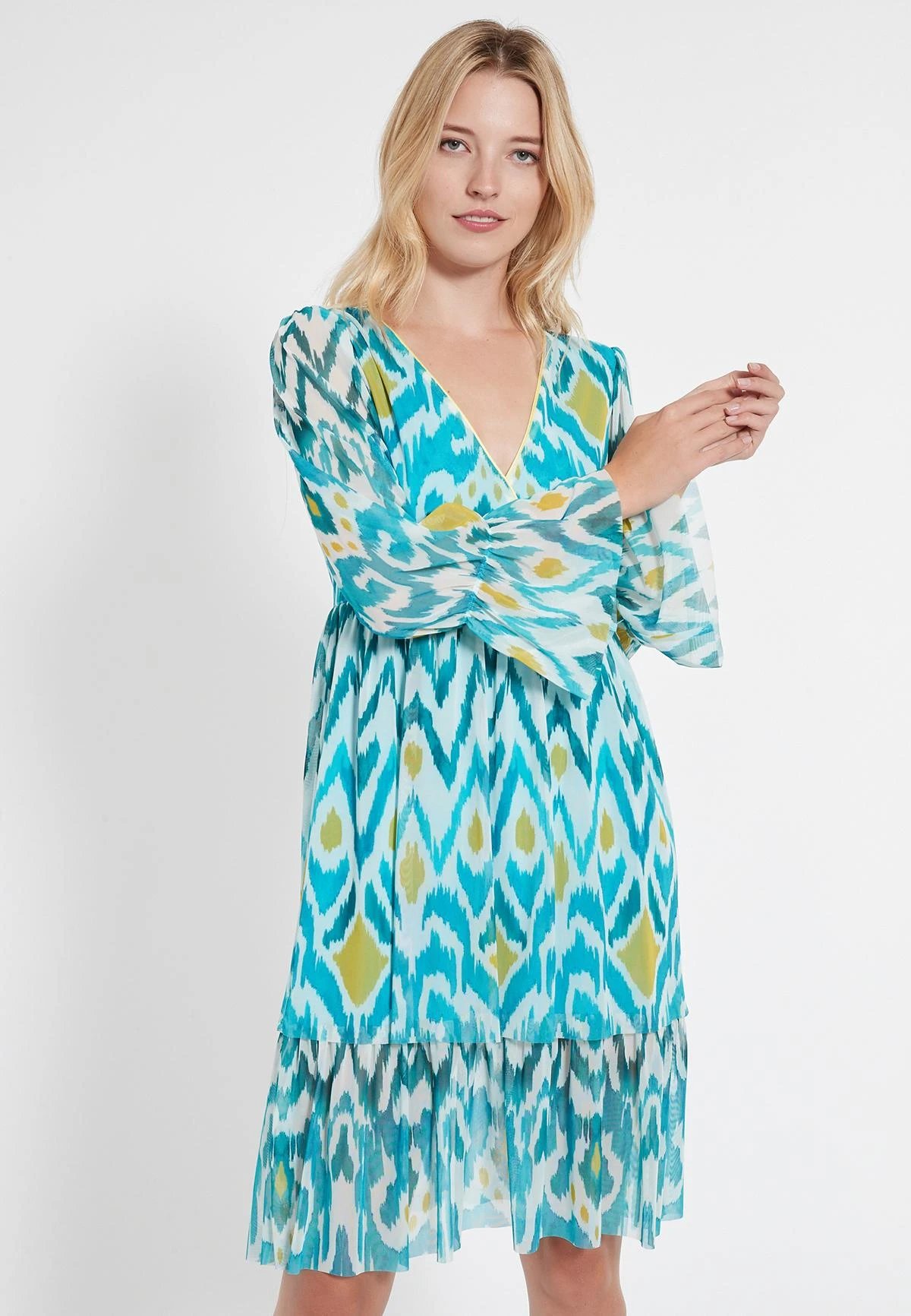 Lange Mouwen Jurk met Volant en Wikkeltop
