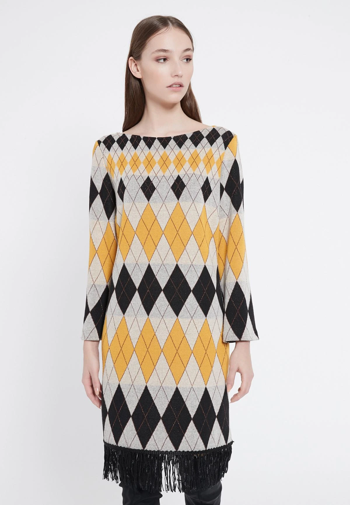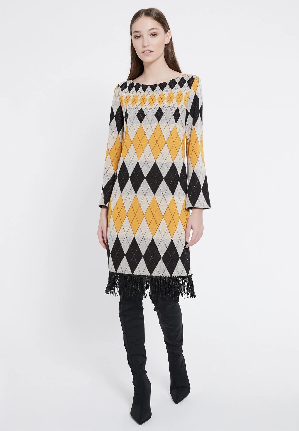 Casual lange mouwen jurk met franjes