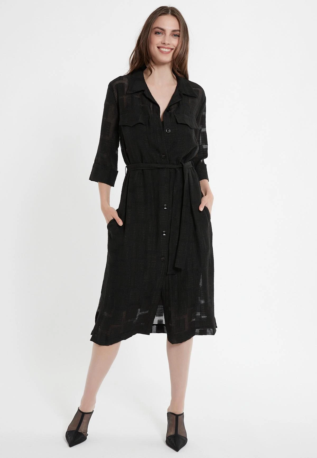 Casual Midi Jurk met 3/4 Mouwen en Zakken