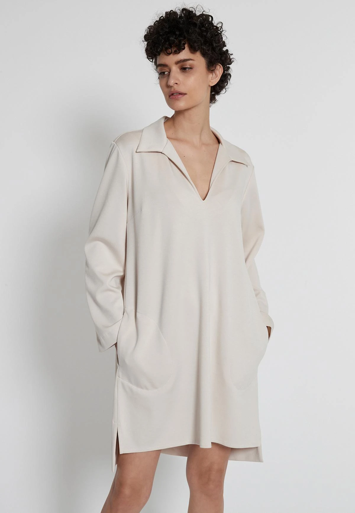 Simple Lange Mouwen Jurk met Kraag en Zakken