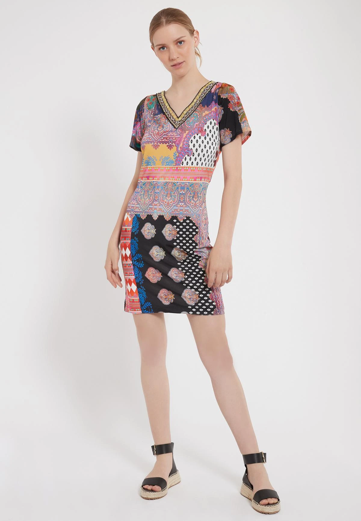 Eenvoudig Jurk met Korte Mouwen en V-Halslijn