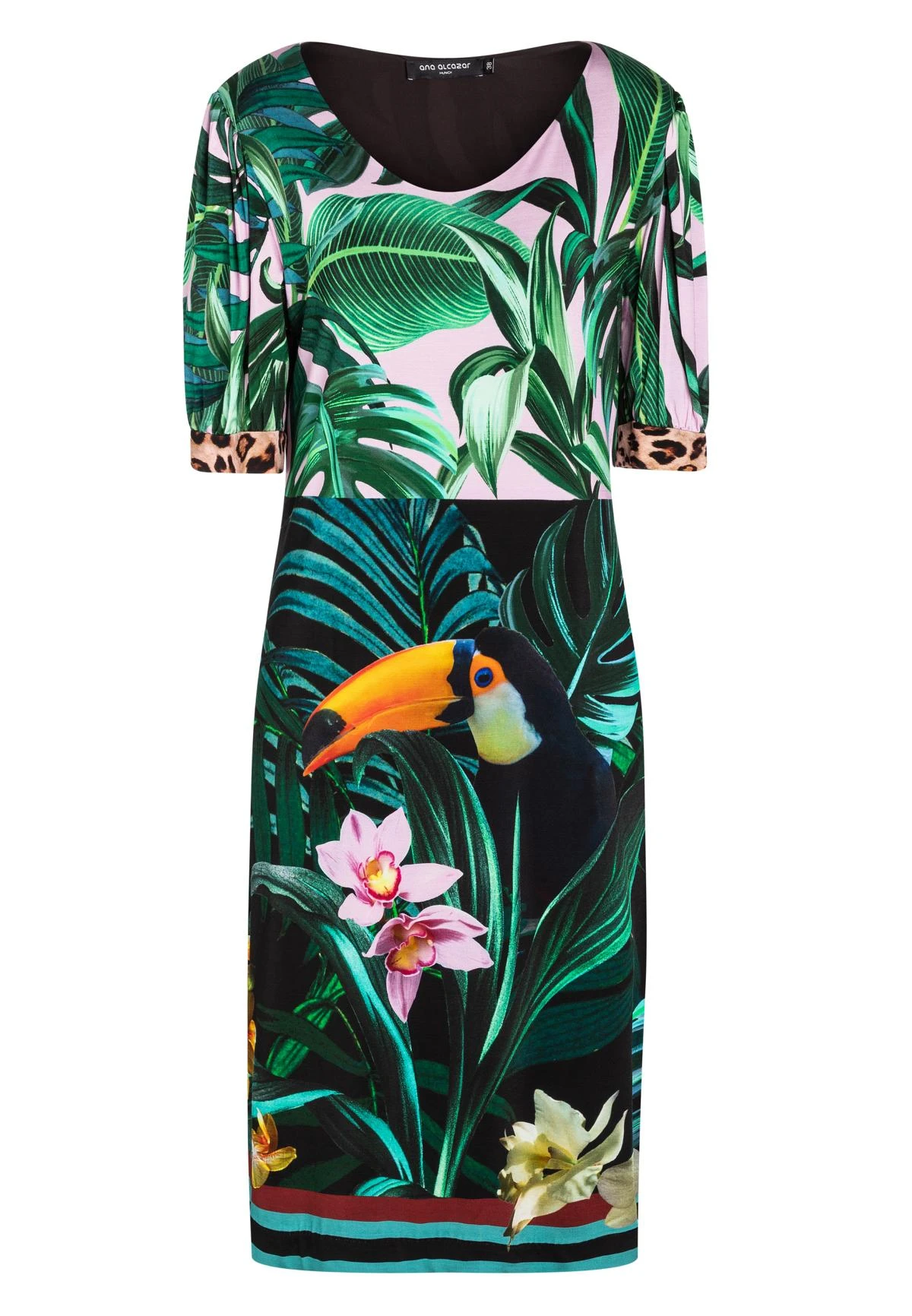 Knie Lengte Jurk met Pofmouw en Ronde Hals
