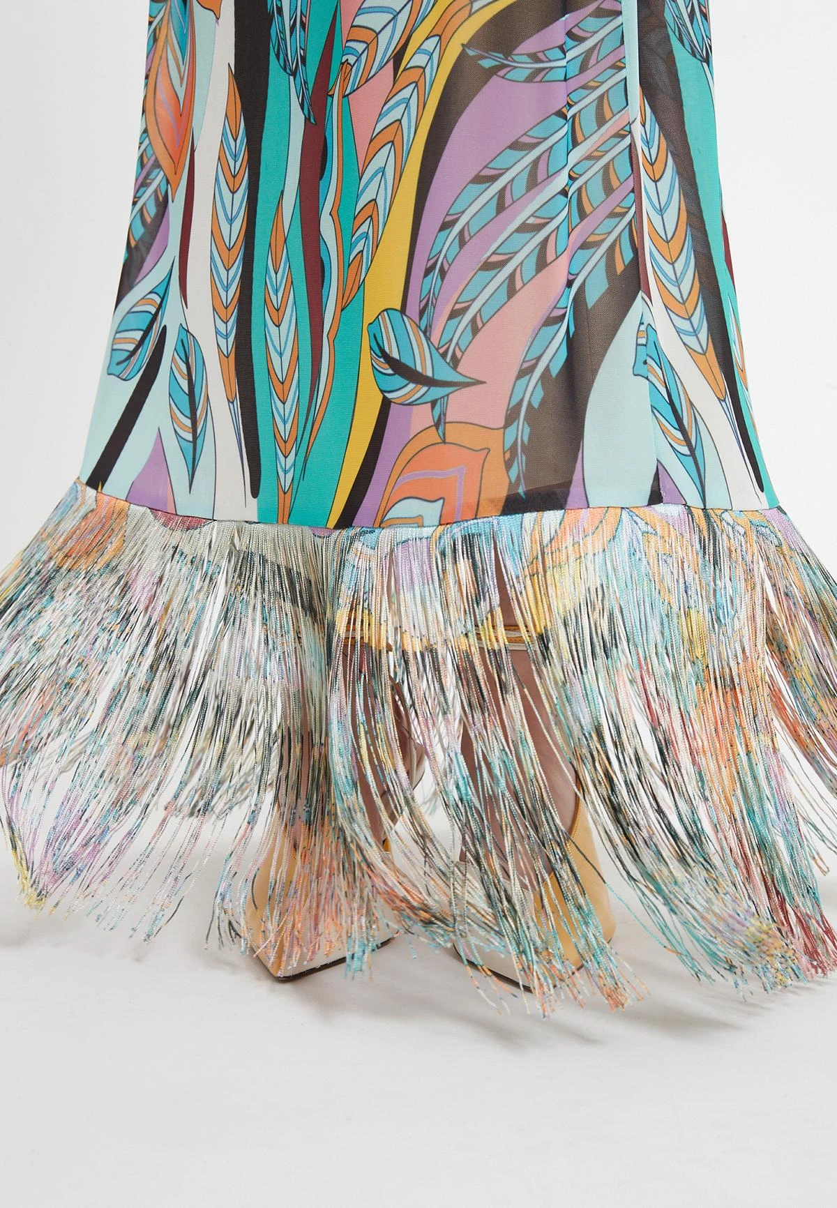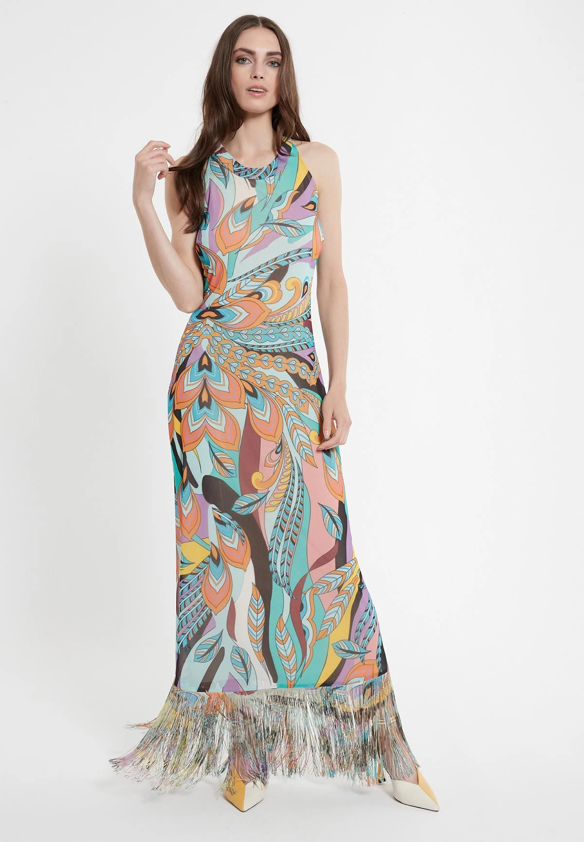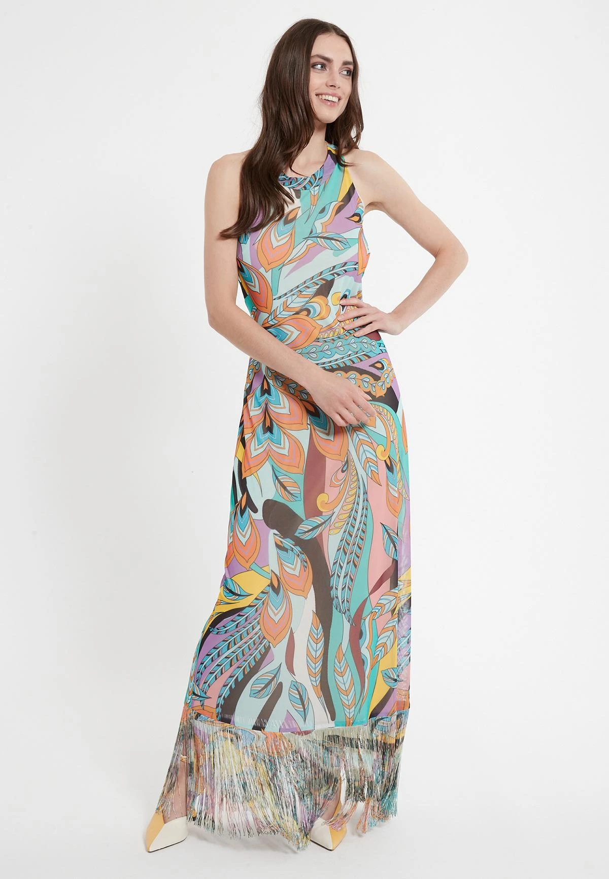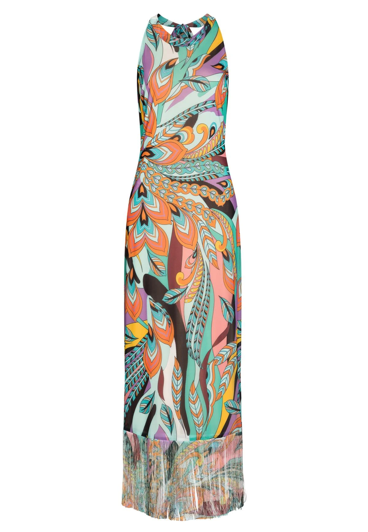 Lange Neckholder Jurk met Franjes