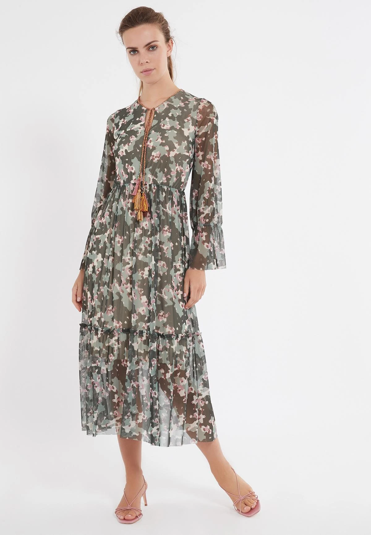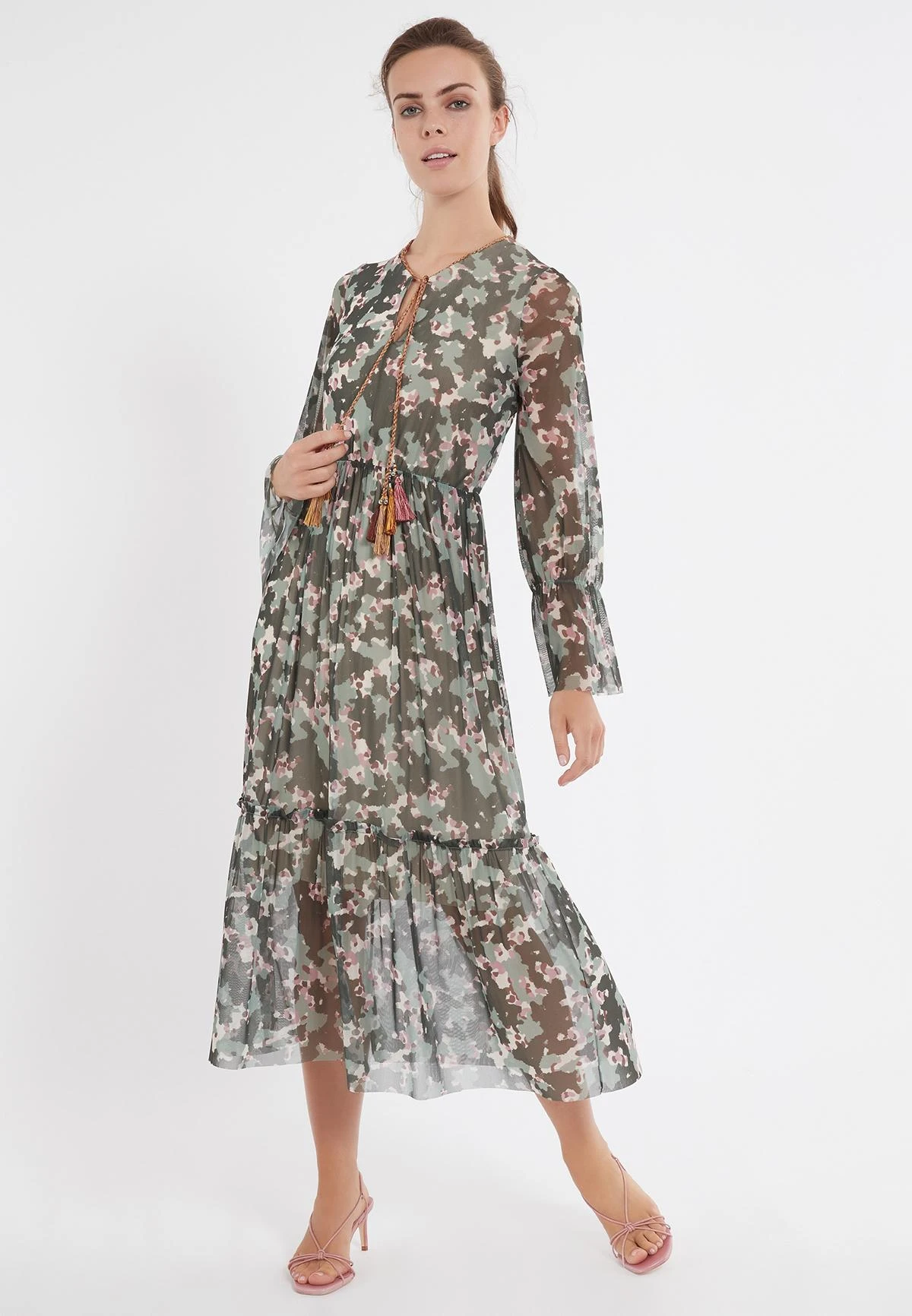 Lange Volant Jurk met Elastische Taille