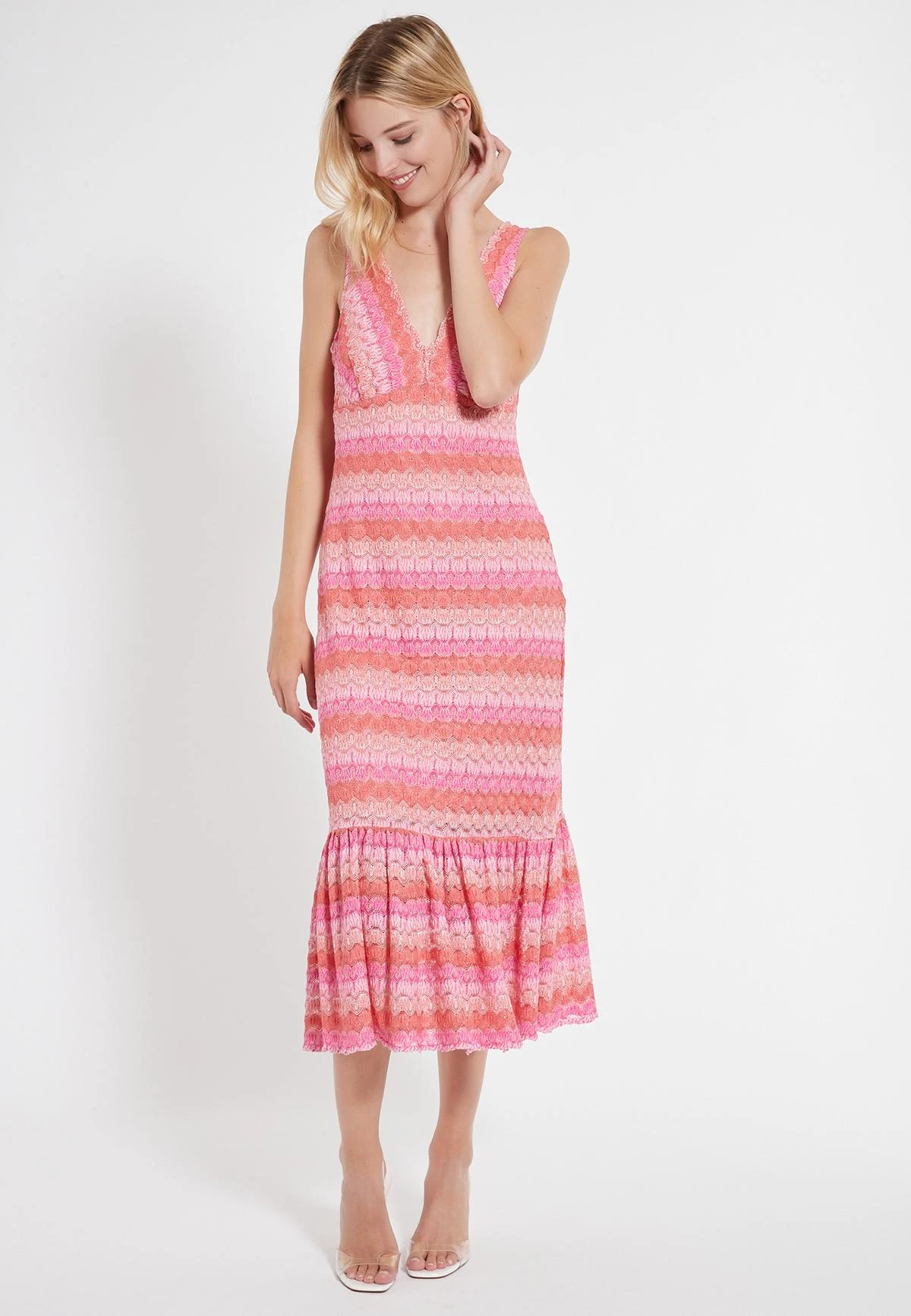Mouwloos Bustier Jurk met Volant en V-Hals