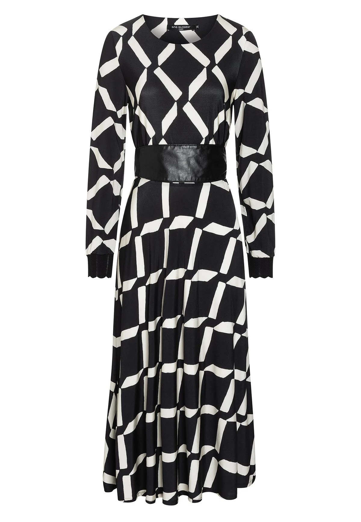 Lange Mouwen Jurk in Midilengte met Ronde Hals