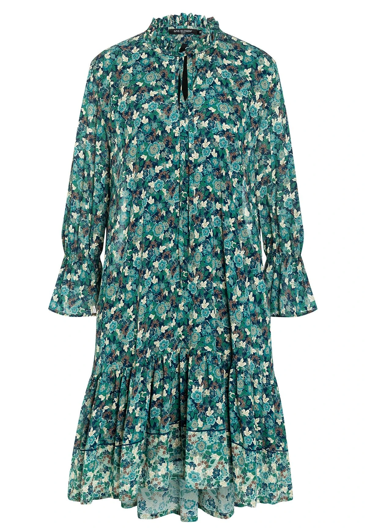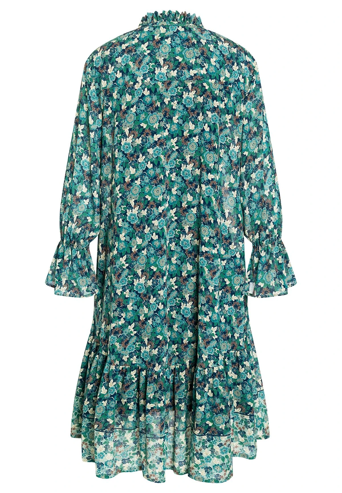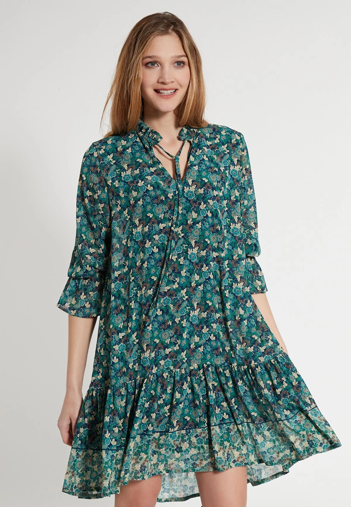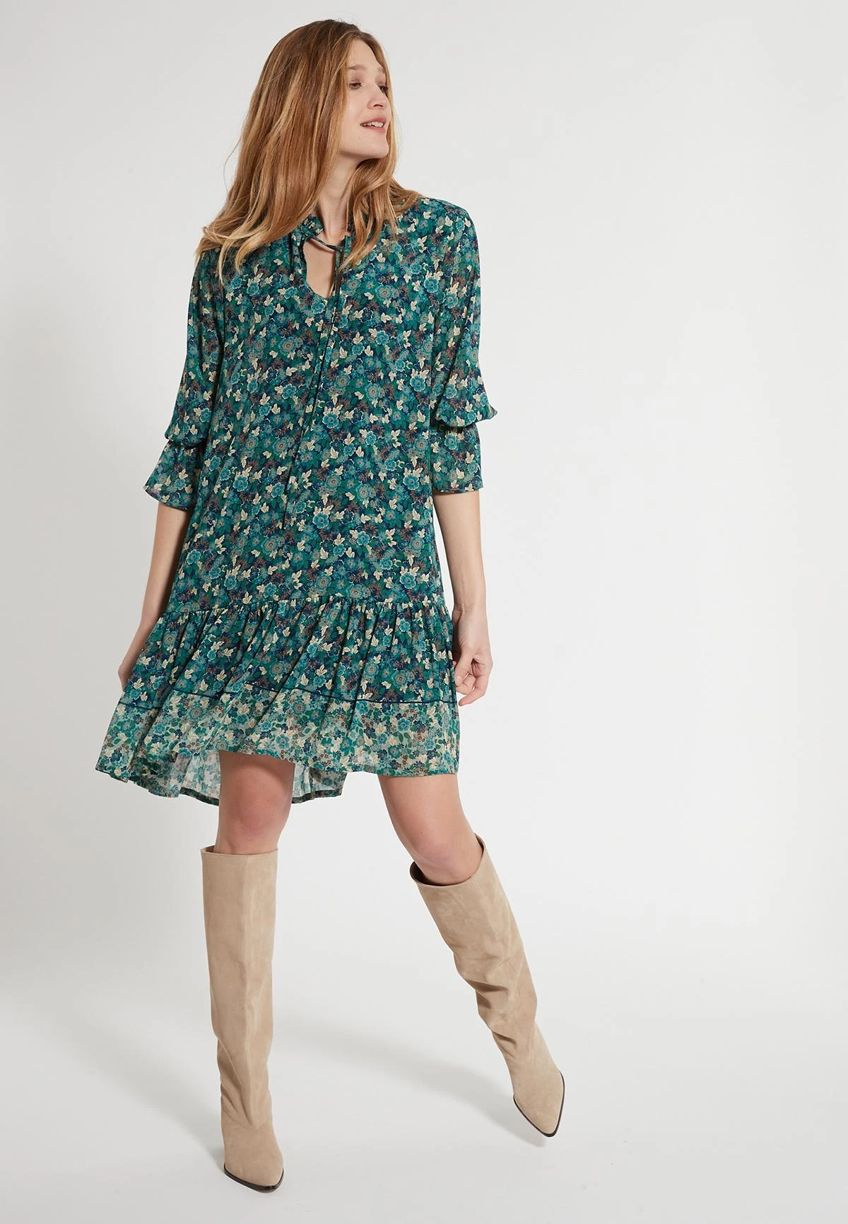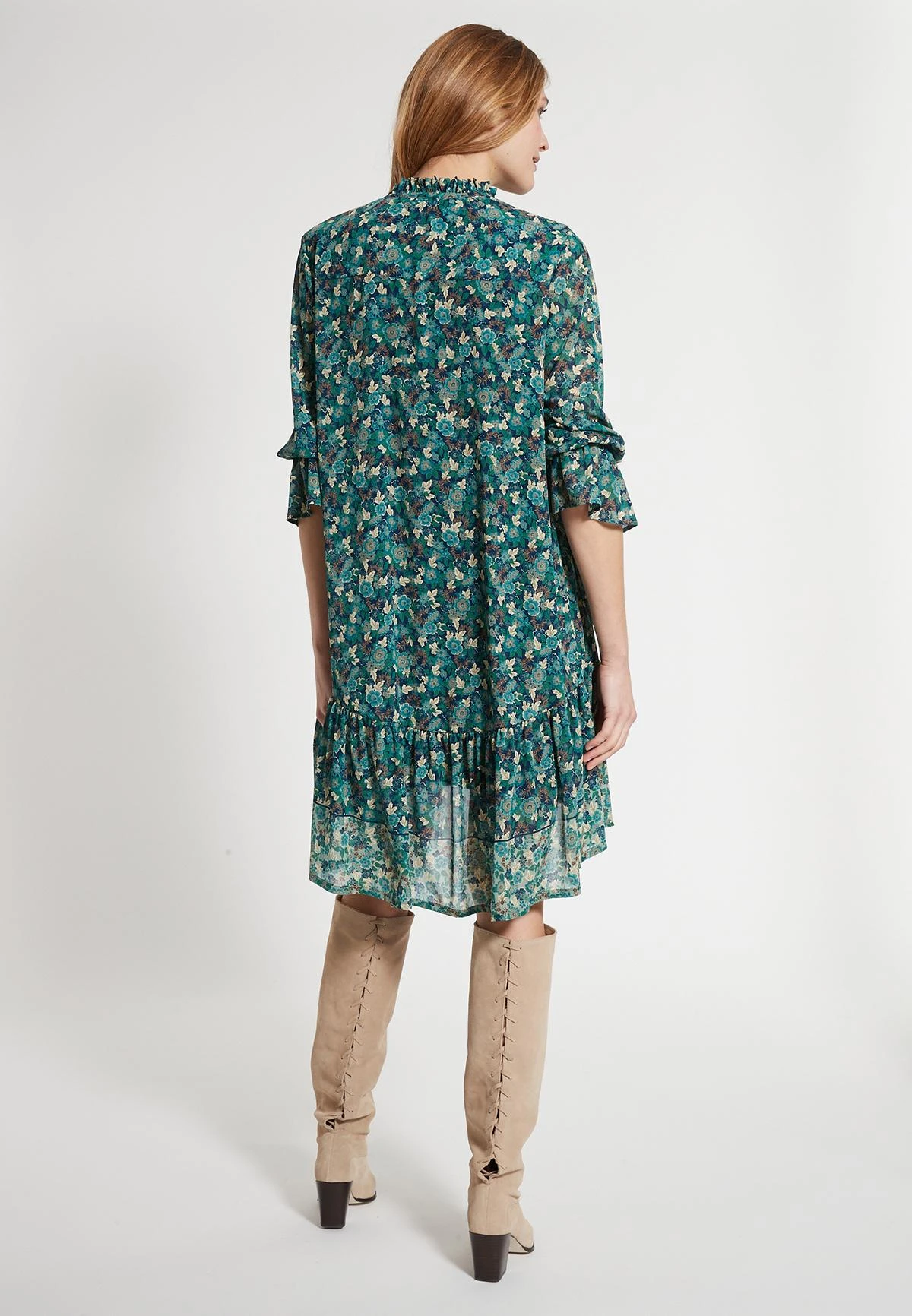 Wijde Jurk met 3/4 Mouw, Ruches en Volant