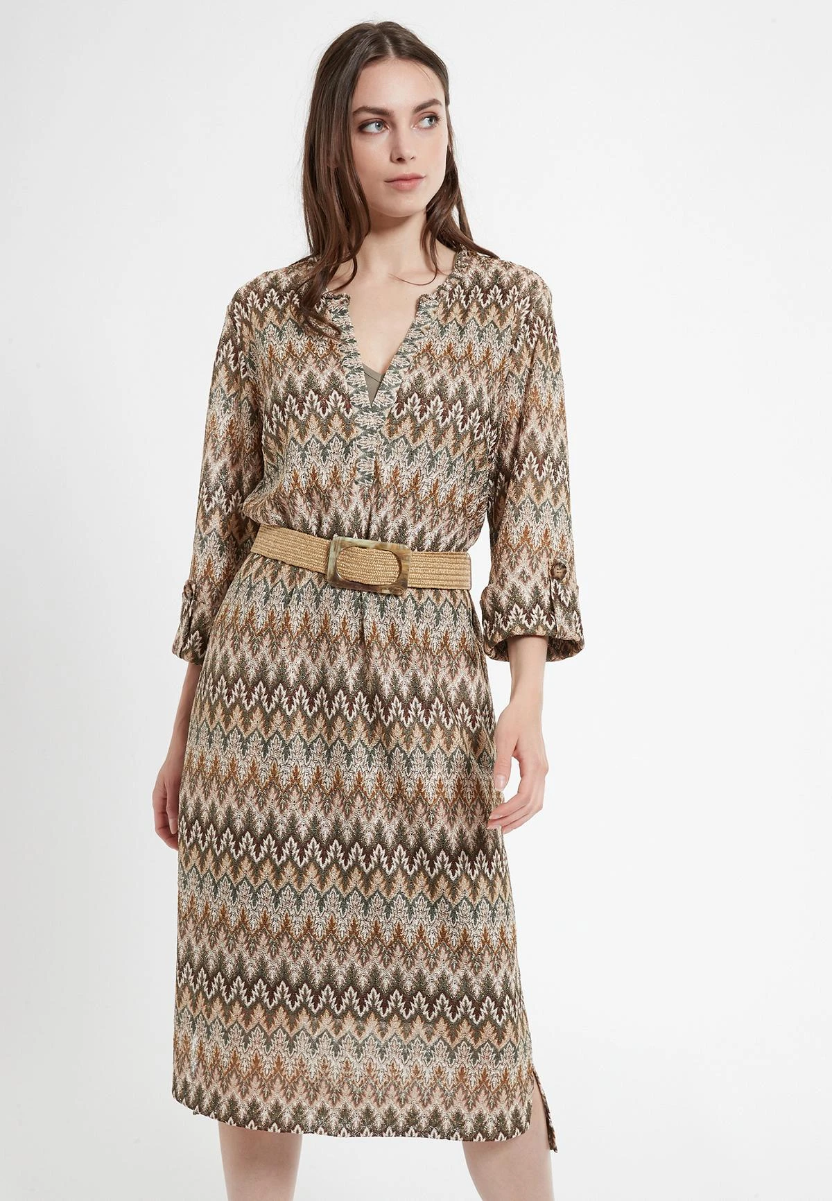 Casual Jurk met Halve Mouw en Kaftan Hals