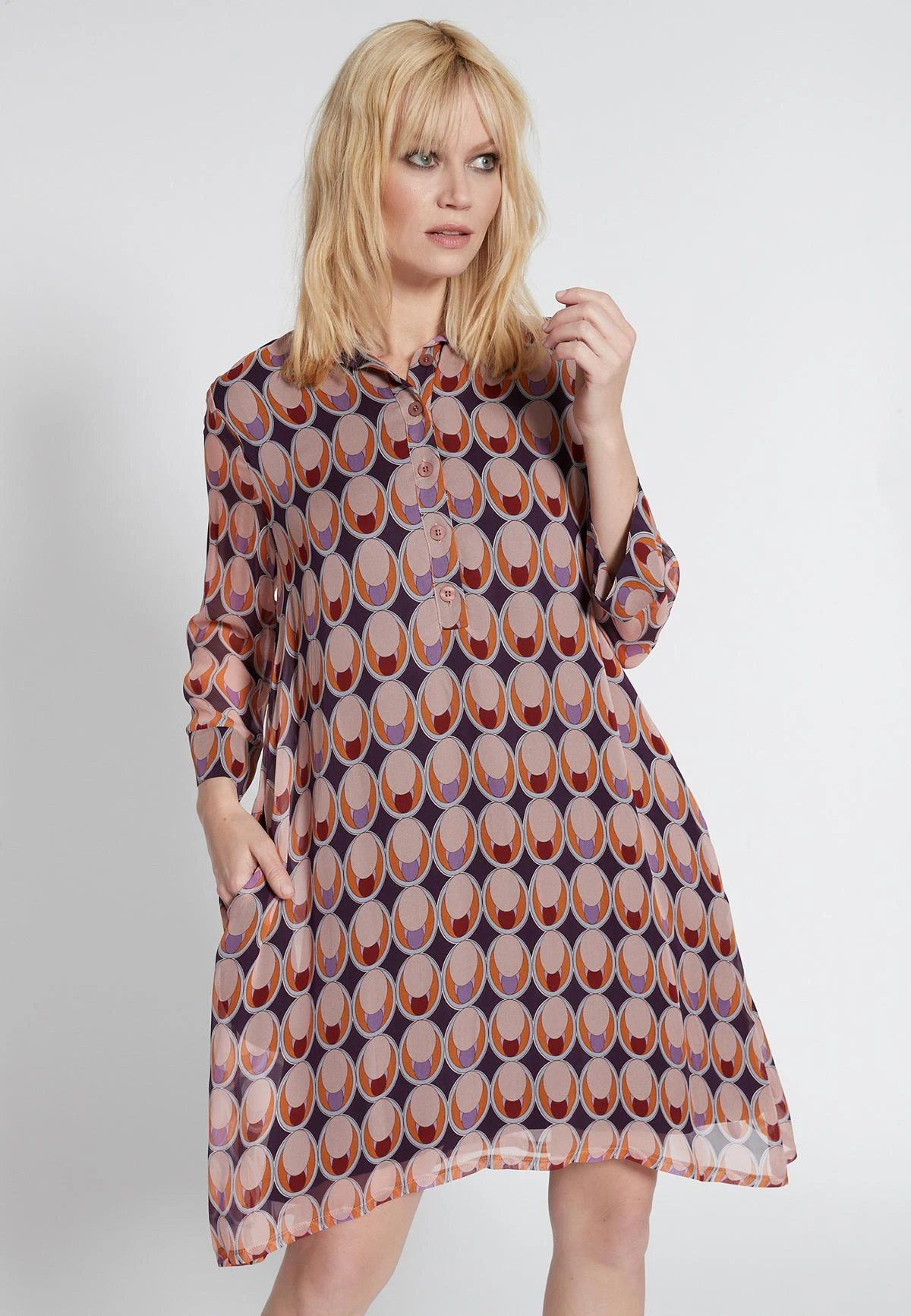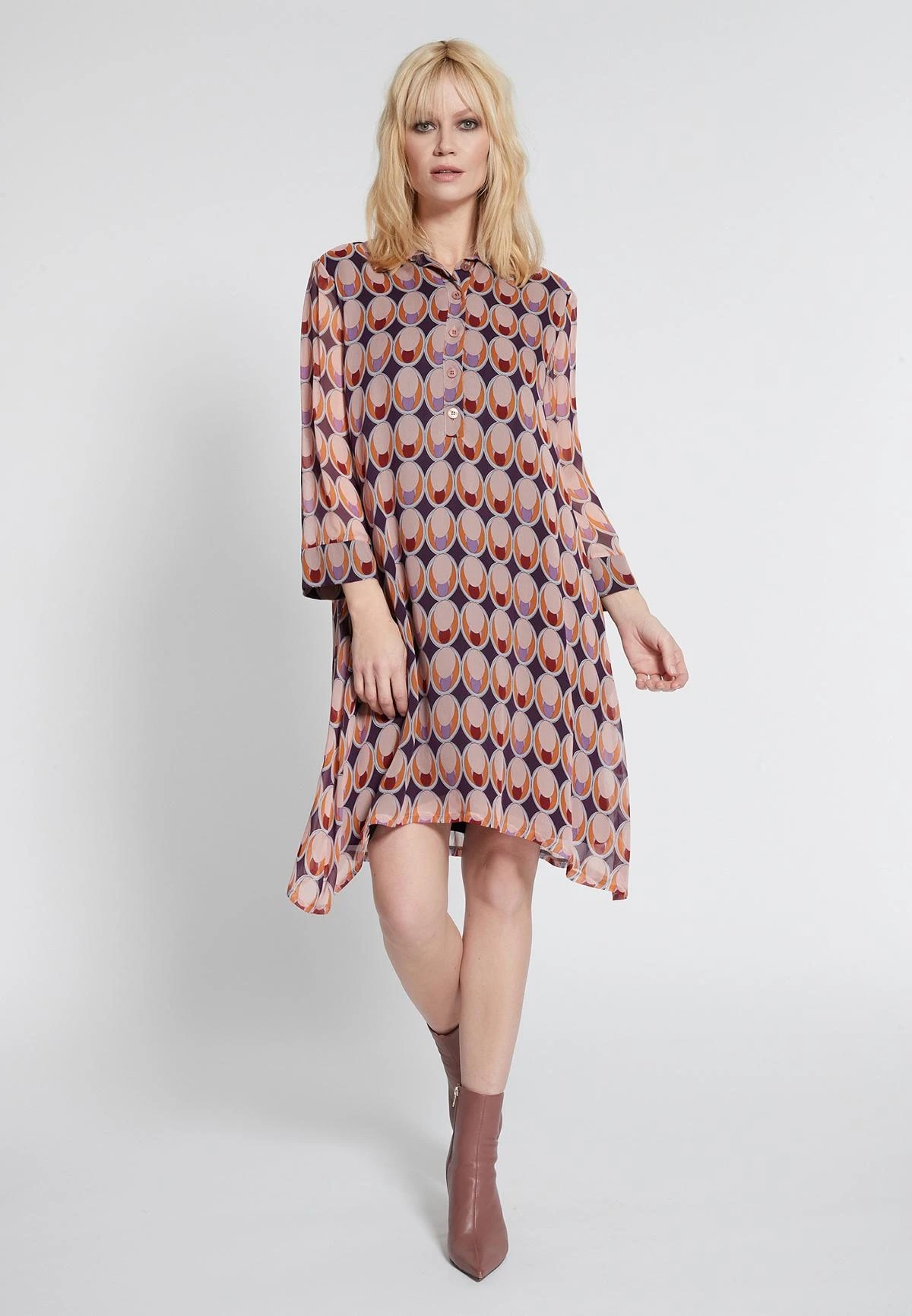 Casual Wijde Jurk met Kraag en 3/4 Mouw