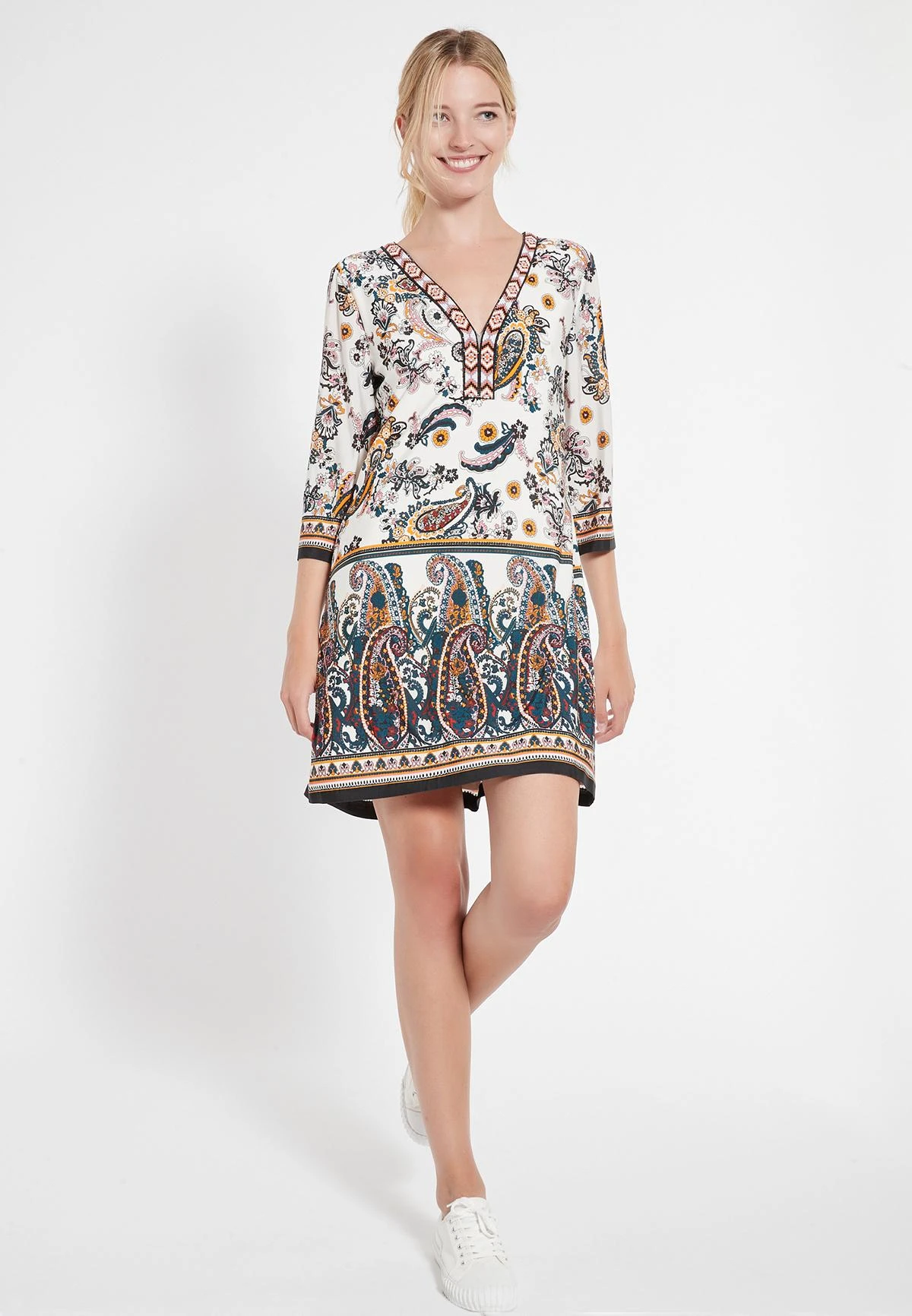 Korte Tuniek Jurk met 3/4 Mouw en V-Hals