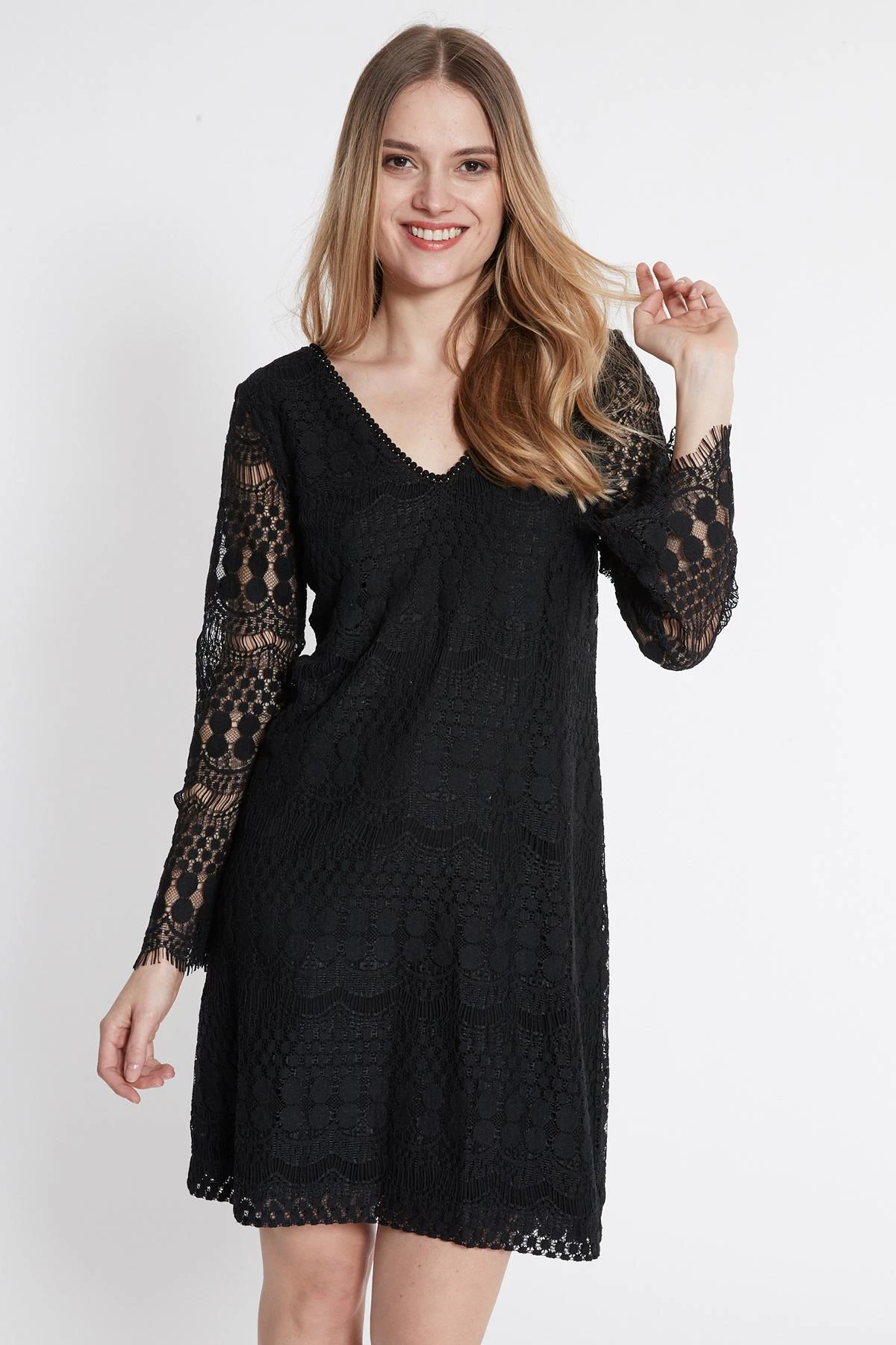 Korte Jurk met lange mouwen en V-Hals