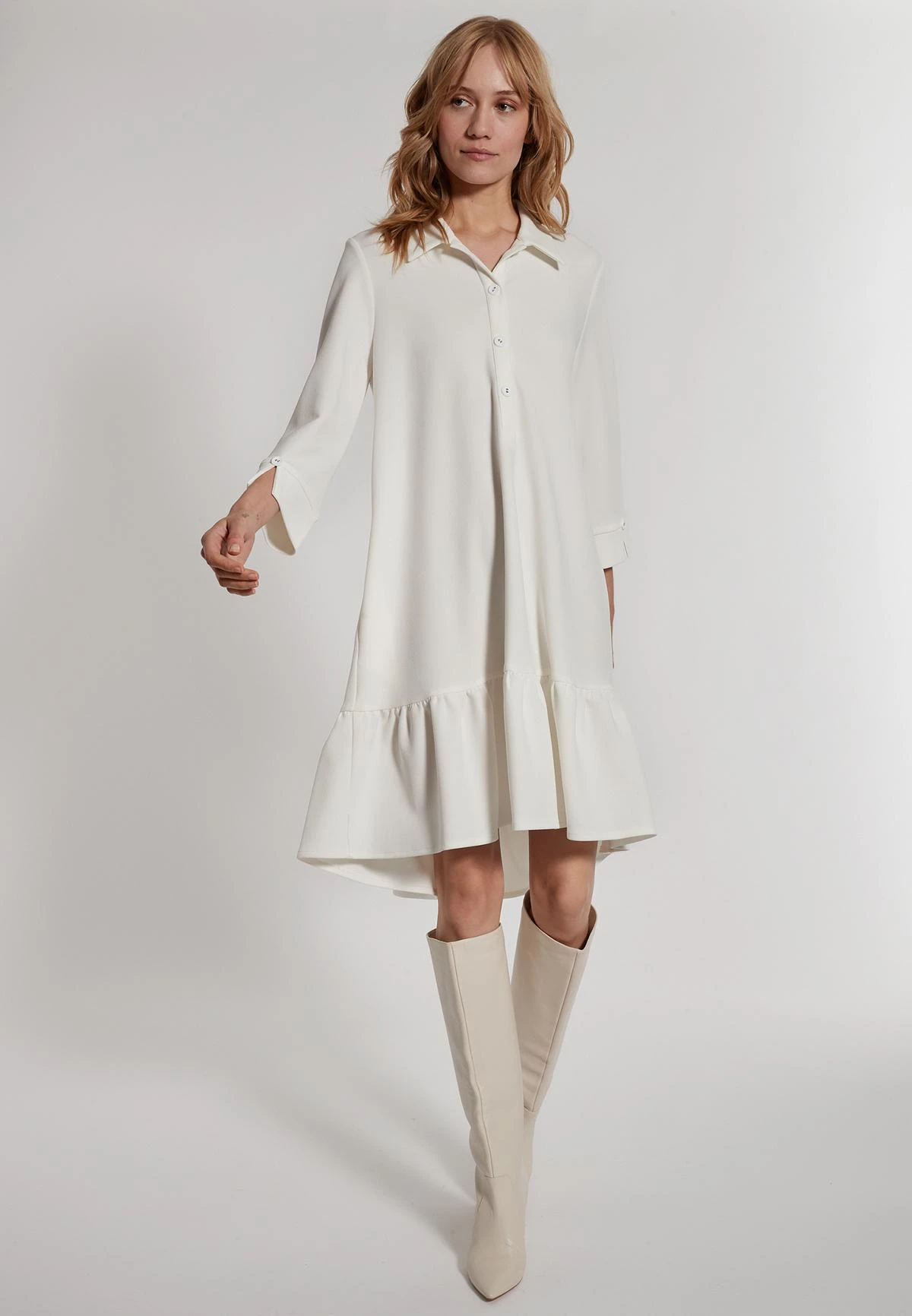 Flared Volant Jurk met 3/4 Mouw en Kraag
